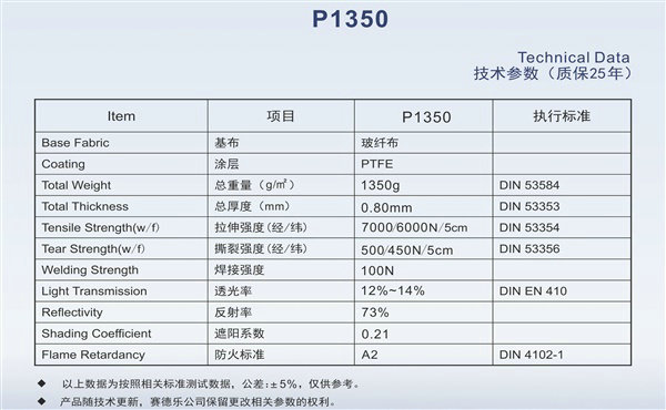 以上就是諾科膜結(jié)構(gòu)為您介紹的 德國進(jìn)口賽德樂膜材P1350 的全部內(nèi)容,希望能夠幫到您,如果您還對張拉膜相關(guān)的內(nèi)容感興趣,請持續(xù)關(guān)注本站.20年的膜結(jié)構(gòu)工程行業(yè)耕耘,近千個ETFE膜材|PTFE膜材|PVDF膜材的項(xiàng)目案例,專業(yè)的膜結(jié)構(gòu)設(shè)計(jì),膜結(jié)構(gòu)加工,膜結(jié)構(gòu)安裝的經(jīng)驗(yàn)是品質(zhì)的保障。